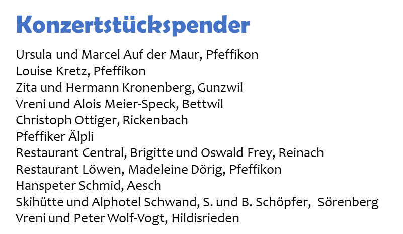 Wir danken unseren Sponsoren und allen Konzertstückspendern für die grosse und wertschätzende Unterstützung.
